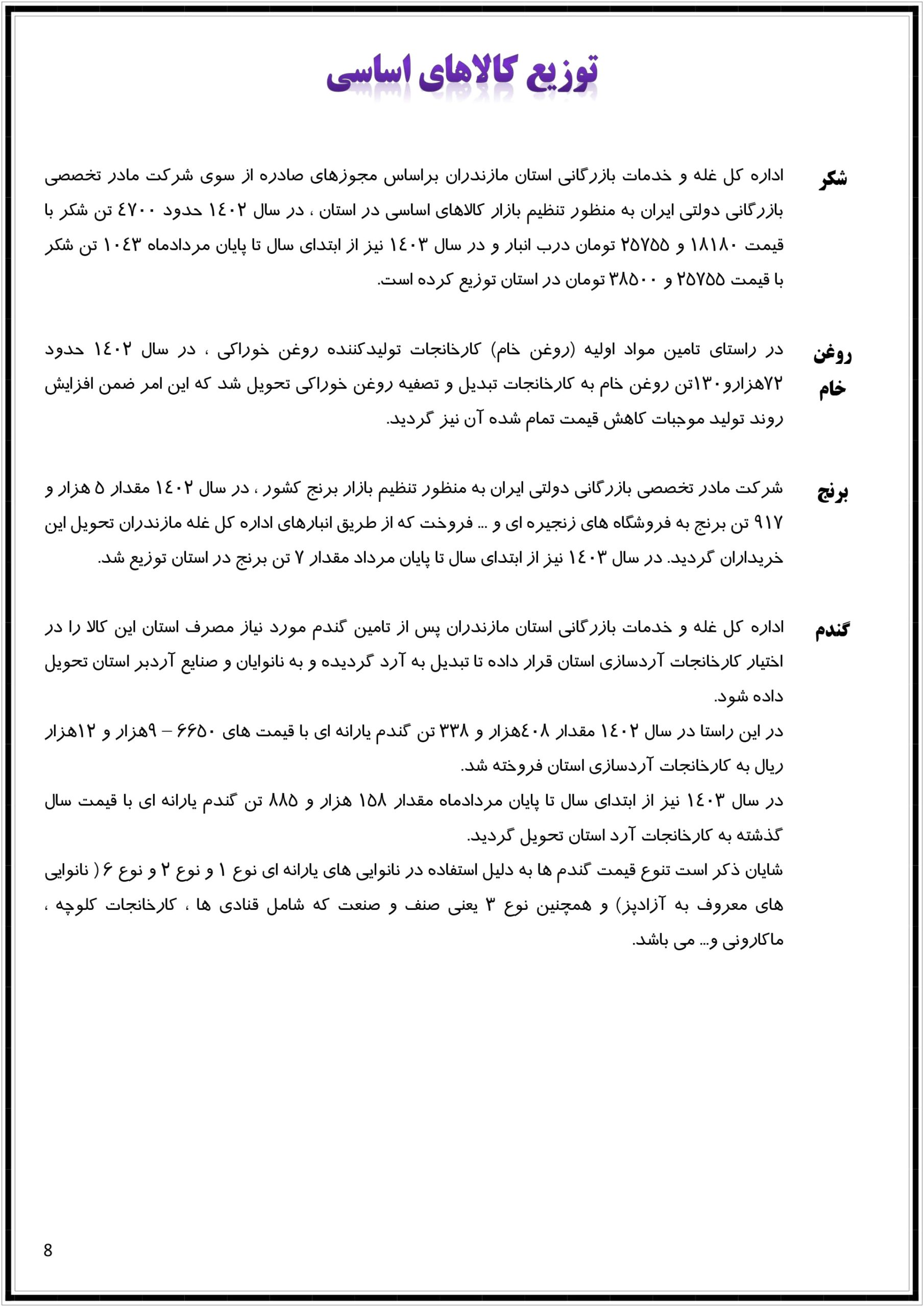 معاون بازرگانی ادارهکل غله و خدمات بازرگانی مازندران گفت: تاکنون هزار و ۲۱۰ تن از ۸ هزار تن روغن خام تأمینشده، پس از فرآوری به روغن خوراکی در بستهبندیهای ۸۱۰ گرمی تبدیل شده است.